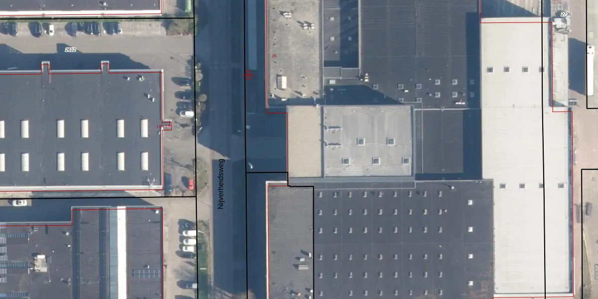 Het perceel waarop Nijverheidsweg 26 staat heeft een oppervlakte van 1,4 ha. Dit is een zeer groot perceel. De perceeloppervlakte wordt geregistreerd door het Kadaster. Gedetailleerde informatie over de maten van dit perceel kunt u vinden in het rapport Kadastrale kaart met maatvoering van Nijverheidsweg 26.