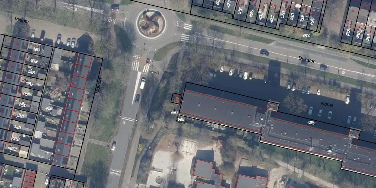 Het perceel waarop Nobel 15 staat heeft een oppervlakte van 2472 m². Dit is een zeer groot perceel. De perceeloppervlakte wordt geregistreerd door het Kadaster. Gedetailleerde informatie over de maten van dit perceel kunt u vinden in het rapport Kadastrale kaart met maatvoering van Nobel 15.