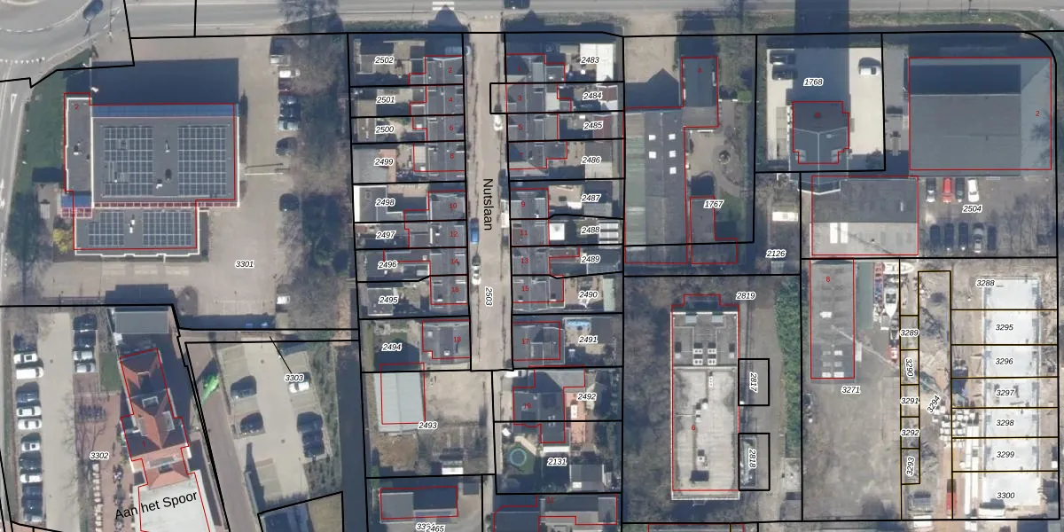 Gebruik de zoekbalk of klik op een perceel voor informatie over de adressen binnen dit perceel.