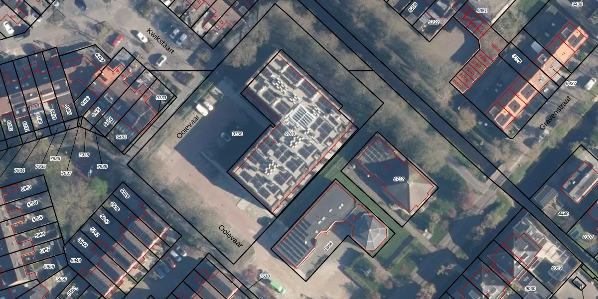 Het perceel waarop Ooievaar 25 staat heeft een oppervlakte van 1225 m². Dit is een zeer groot perceel. De perceeloppervlakte wordt geregistreerd door het Kadaster. Gedetailleerde informatie over de maten van dit perceel kunt u vinden in het rapport Kadastrale kaart met maatvoering van Ooievaar 25.