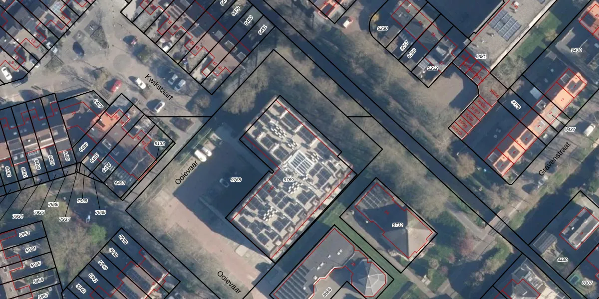 Het perceel waarop Ooievaar 6 staat heeft een oppervlakte van 1225 m². Dit is een zeer groot perceel. De perceeloppervlakte wordt geregistreerd door het Kadaster. Gedetailleerde informatie over de maten van dit perceel kunt u vinden in het rapport Kadastrale kaart met maatvoering van Ooievaar 6.