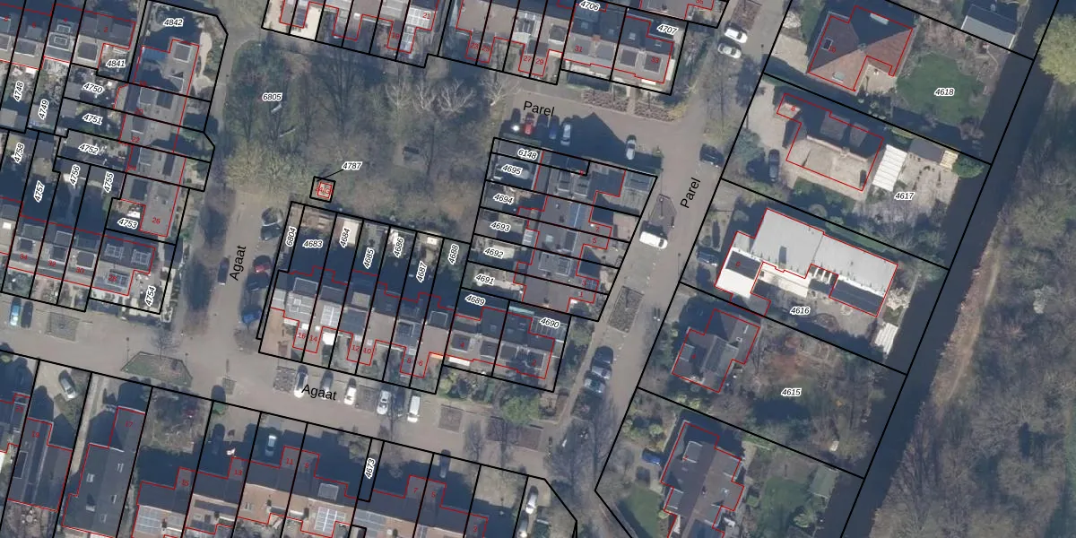 Gebruik de zoekbalk of klik op een perceel voor informatie over de adressen binnen dit perceel.