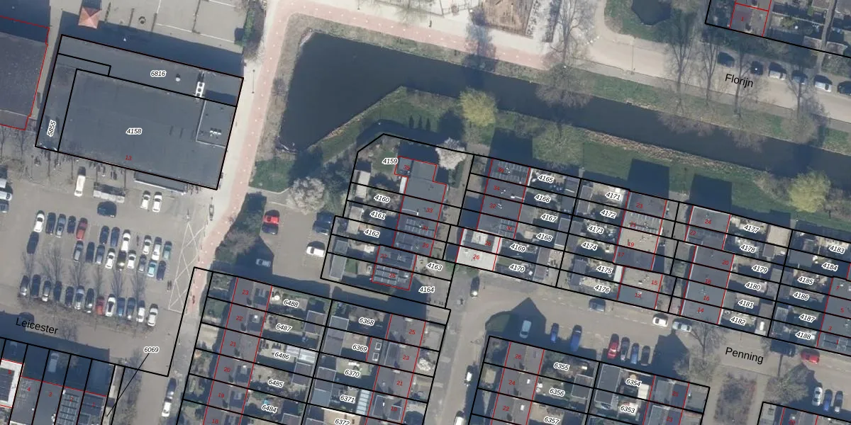 Het perceel waarop Penning 33 staat heeft een oppervlakte van 115 m². Dit is een middelgroot perceel. De perceeloppervlakte wordt geregistreerd door het Kadaster. Gedetailleerde informatie over de maten van dit perceel kunt u vinden in het rapport Kadastrale kaart met maatvoering van Penning 33.