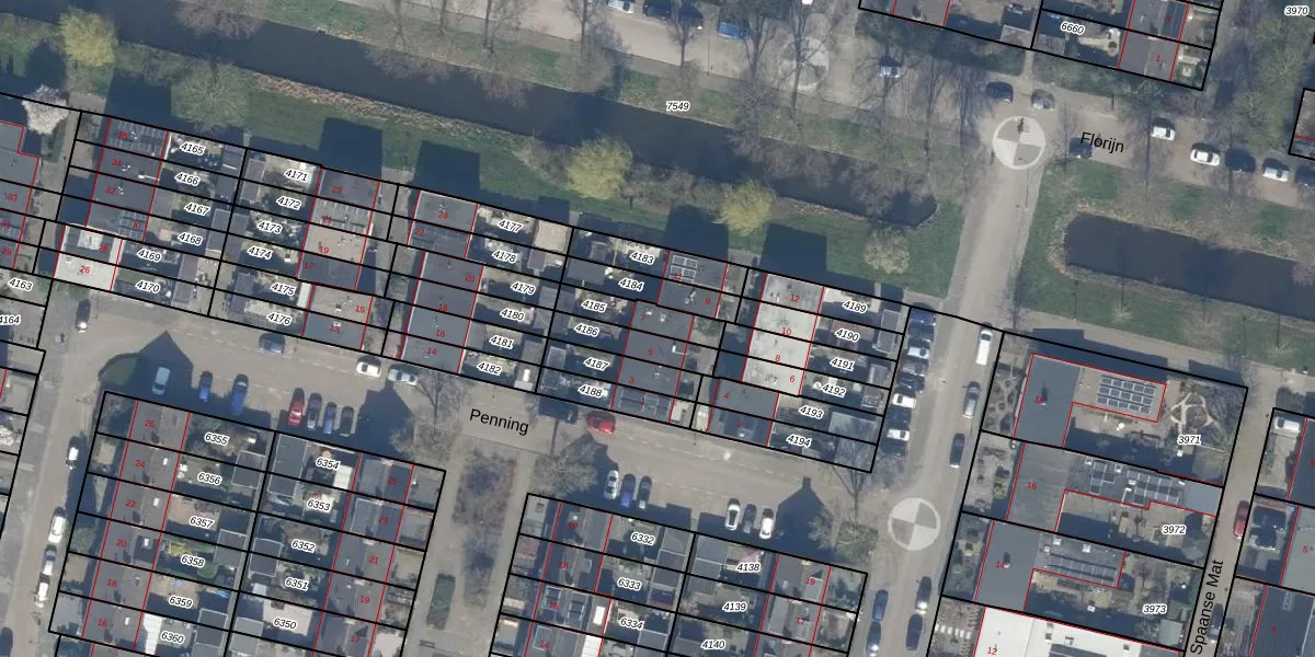 Het perceel waarop Penning 7 staat heeft een oppervlakte van 110 m². Dit is een middelgroot perceel. De perceeloppervlakte wordt geregistreerd door het Kadaster. Gedetailleerde informatie over de maten van dit perceel kunt u vinden in het rapport Kadastrale kaart met maatvoering van Penning 7.