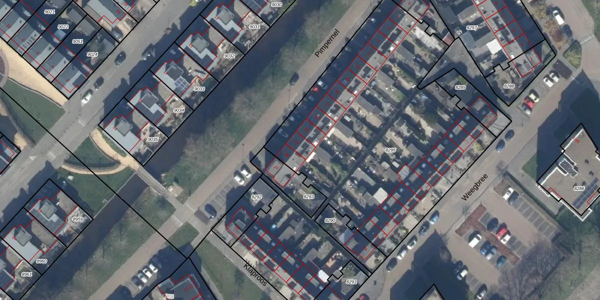 Pimpernel 23 is gelegen op kadastraal perceel MDT01C8295. Deze kadastrale aanduiding is uniek en wordt gebruikt door het Kadaster om eigendomsrechten en andere zakelijke rechten vast te leggen. Het perceel maakt onderdeel uit van de kadastrale gemeente Mijdrecht.