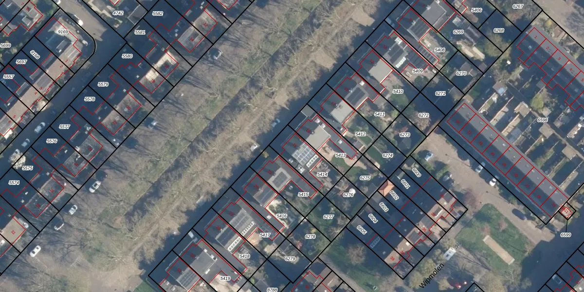 Gebruik de zoekbalk of klik op een perceel voor informatie over de adressen binnen dit perceel.