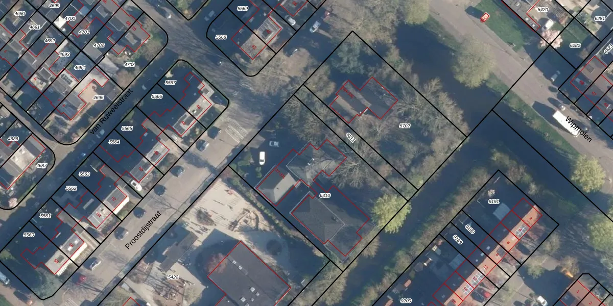 Het perceel waarop Proostdijstraat 37-A staat heeft een oppervlakte van 1600 m². Dit is een zeer groot perceel. De perceeloppervlakte wordt geregistreerd door het Kadaster. Gedetailleerde informatie over de maten van dit perceel kunt u vinden in het rapport Kadastrale kaart met maatvoering van Proostdijstraat 37-A.