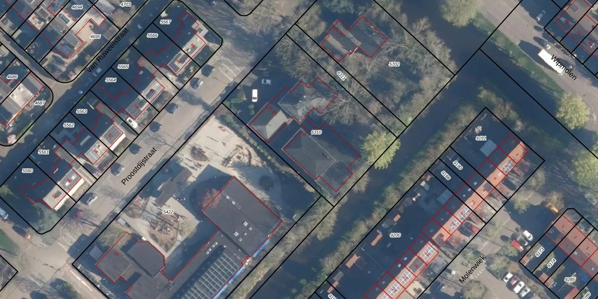 Het perceel waarop Proostdijstraat 37-K staat heeft een oppervlakte van 1600 m². Dit is een zeer groot perceel. De perceeloppervlakte wordt geregistreerd door het Kadaster. Gedetailleerde informatie over de maten van dit perceel kunt u vinden in het rapport Kadastrale kaart met maatvoering van Proostdijstraat 37-K.