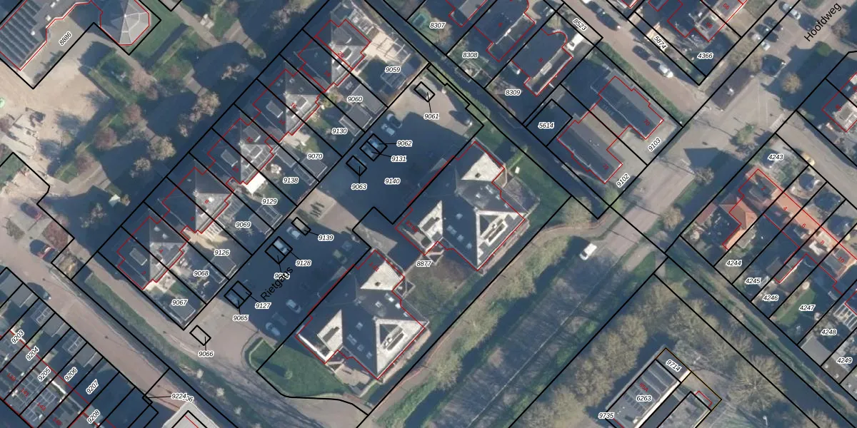 Het perceel waarop Rietgans 55 staat heeft een oppervlakte van 2046 m². Dit is een zeer groot perceel. De perceeloppervlakte wordt geregistreerd door het Kadaster. Gedetailleerde informatie over de maten van dit perceel kunt u vinden in het rapport Kadastrale kaart met maatvoering van Rietgans 55.