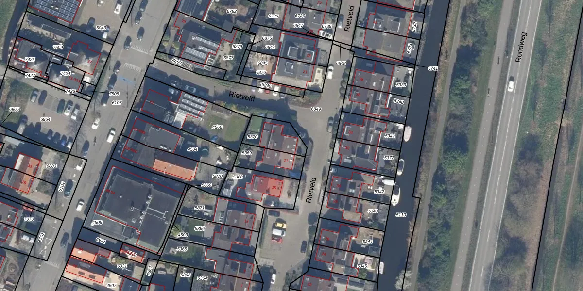 Het perceel waarop Rietveld 19 staat heeft een oppervlakte van 195 m². Dit is een middelgroot perceel. De perceeloppervlakte wordt geregistreerd door het Kadaster. Gedetailleerde informatie over de maten van dit perceel kunt u vinden in het rapport Kadastrale kaart met maatvoering van Rietveld 19.