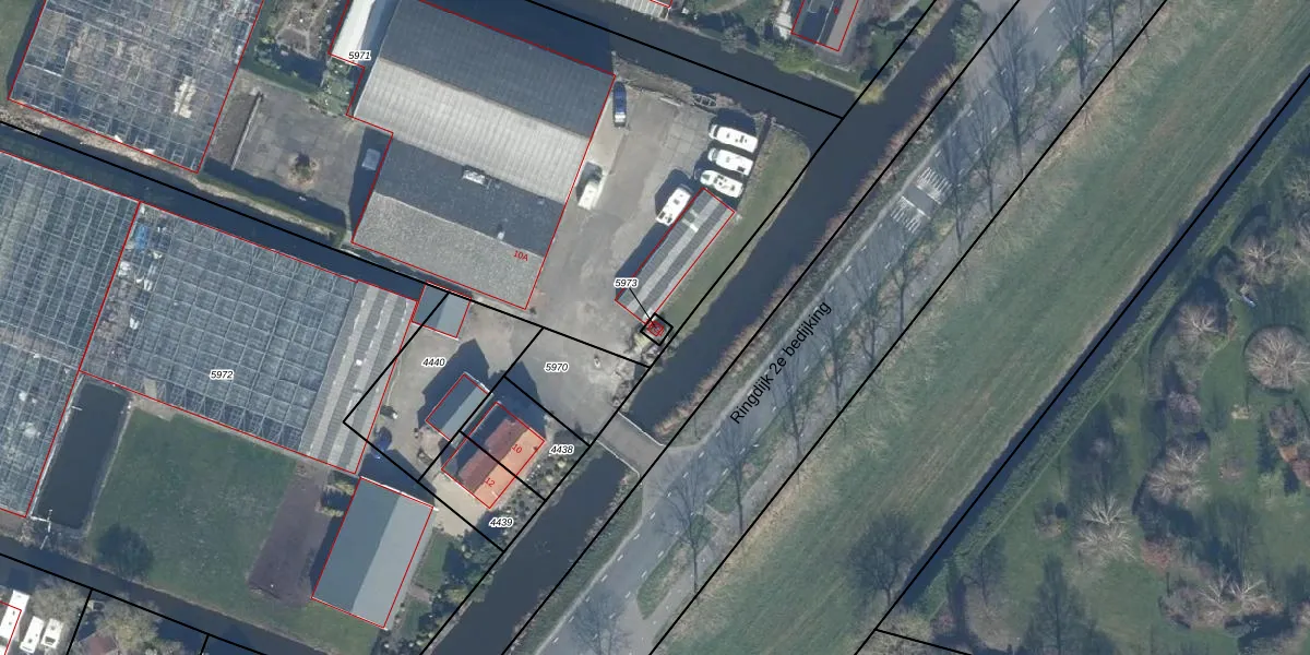 Het perceel waarop Ringdijk 2e bedijking 10-G1 staat heeft een oppervlakte van 12 m². Dit is een klein perceel. De perceeloppervlakte wordt geregistreerd door het Kadaster. Gedetailleerde informatie over de maten van dit perceel kunt u vinden in het rapport Kadastrale kaart met maatvoering van Ringdijk 2e bedijking 10-G1.
