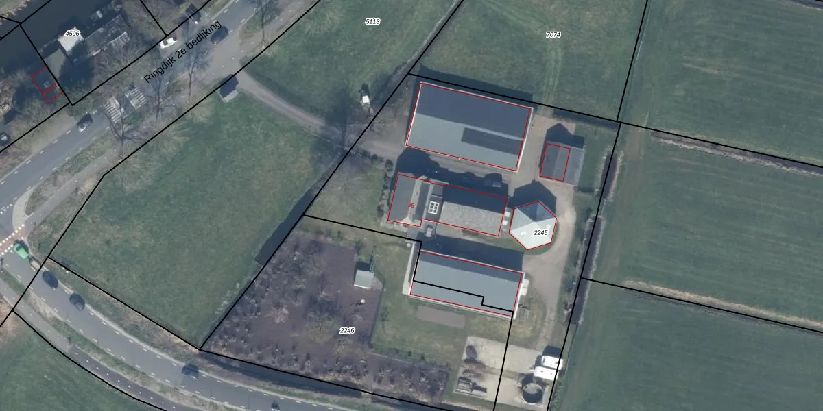 Het perceel waarop Ringdijk 2e bedijking 35 staat heeft een oppervlakte van 3280 m². Dit is een zeer groot perceel. De perceeloppervlakte wordt geregistreerd door het Kadaster. Gedetailleerde informatie over de maten van dit perceel kunt u vinden in het rapport Kadastrale kaart met maatvoering van Ringdijk 2e bedijking 35.