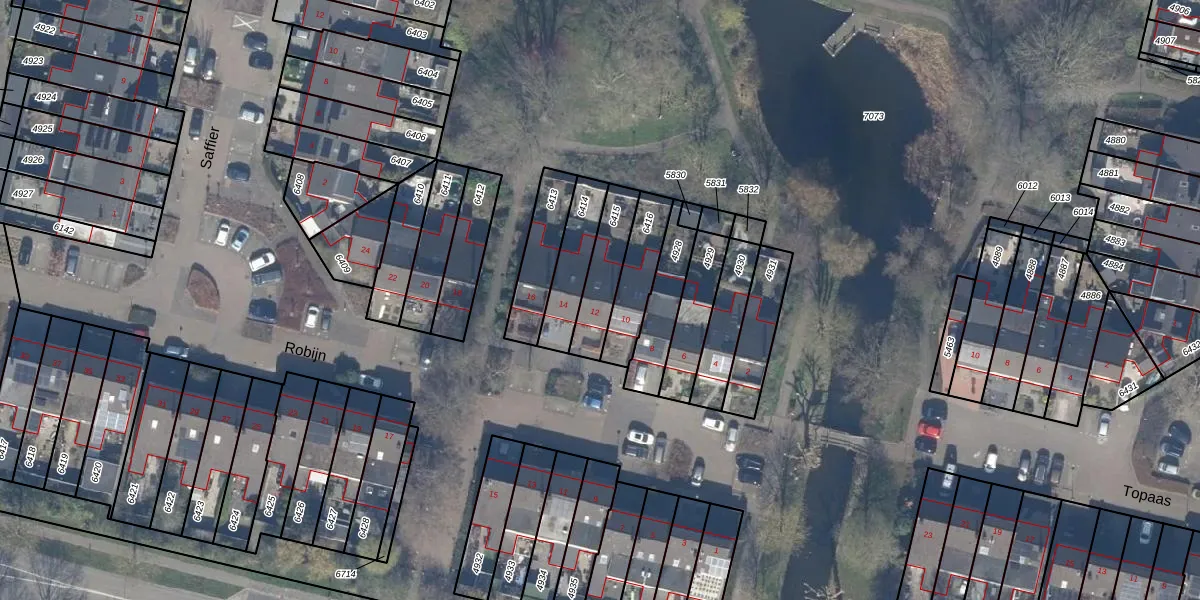 Het perceel waarop Robijn 12 staat heeft een oppervlakte van 157 m². Dit is een middelgroot perceel. De perceeloppervlakte wordt geregistreerd door het Kadaster. Gedetailleerde informatie over de maten van dit perceel kunt u vinden in het rapport Kadastrale kaart met maatvoering van Robijn 12.