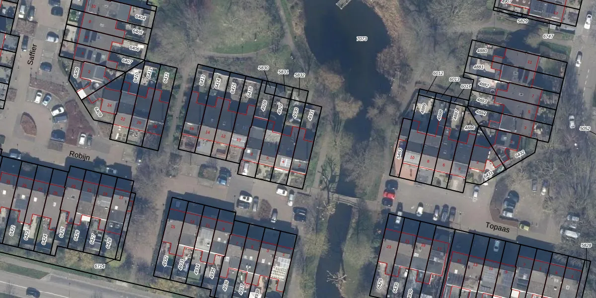 Het perceel waarop Robijn 2 staat heeft een oppervlakte van 160 m². Dit is een middelgroot perceel. De perceeloppervlakte wordt geregistreerd door het Kadaster. Gedetailleerde informatie over de maten van dit perceel kunt u vinden in het rapport Kadastrale kaart met maatvoering van Robijn 2.