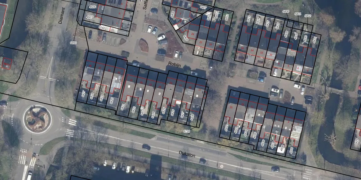 Het perceel waarop Robijn 21 staat heeft een oppervlakte van 147 m². Dit is een middelgroot perceel. De perceeloppervlakte wordt geregistreerd door het Kadaster. Gedetailleerde informatie over de maten van dit perceel kunt u vinden in het rapport Kadastrale kaart met maatvoering van Robijn 21.