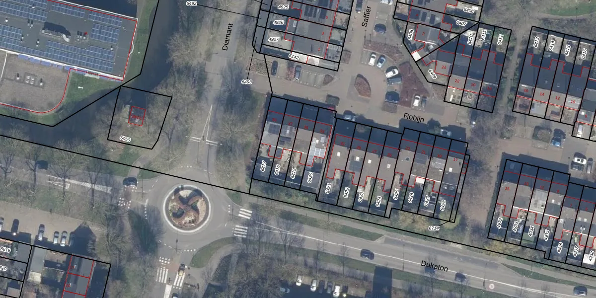 Het perceel waarop Robijn 35 staat heeft een oppervlakte van 153 m². Dit is een middelgroot perceel. De perceeloppervlakte wordt geregistreerd door het Kadaster. Gedetailleerde informatie over de maten van dit perceel kunt u vinden in het rapport Kadastrale kaart met maatvoering van Robijn 35.
