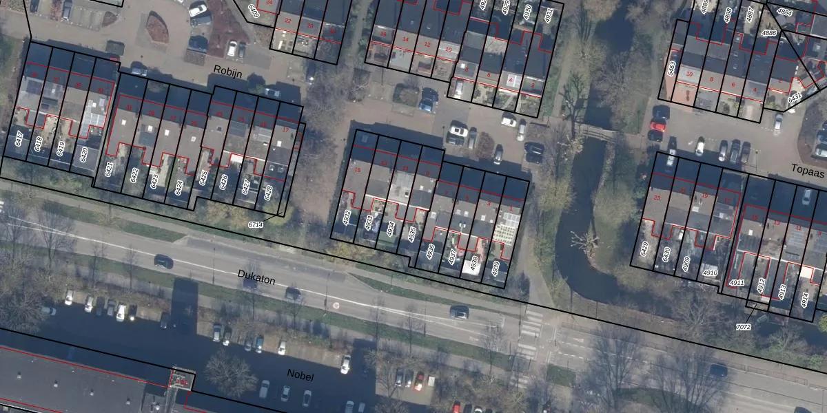 Het perceel waarop Robijn 9 staat heeft een oppervlakte van 152 m². Dit is een middelgroot perceel. De perceeloppervlakte wordt geregistreerd door het Kadaster. Gedetailleerde informatie over de maten van dit perceel kunt u vinden in het rapport Kadastrale kaart met maatvoering van Robijn 9.