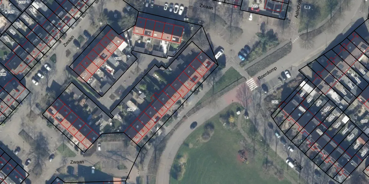 Het perceel waarop Roerdomp 121 staat heeft een oppervlakte van 2215 m². Dit is een zeer groot perceel. De perceeloppervlakte wordt geregistreerd door het Kadaster. Gedetailleerde informatie over de maten van dit perceel kunt u vinden in het rapport Kadastrale kaart met maatvoering van Roerdomp 121.