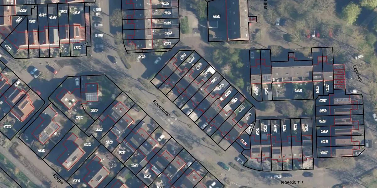 Gebruik de zoekbalk of klik op een perceel voor informatie over de adressen binnen dit perceel.