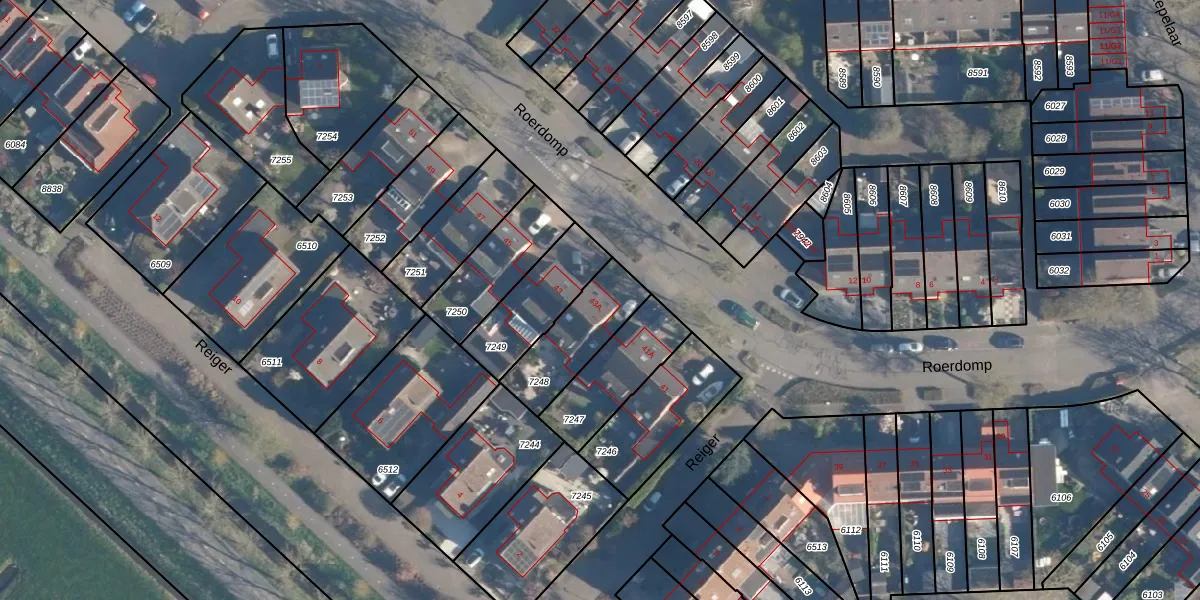 Het perceel waarop Roerdomp 43 staat heeft een oppervlakte van 249 m². Dit is een middelgroot perceel. De perceeloppervlakte wordt geregistreerd door het Kadaster. Gedetailleerde informatie over de maten van dit perceel kunt u vinden in het rapport Kadastrale kaart met maatvoering van Roerdomp 43.