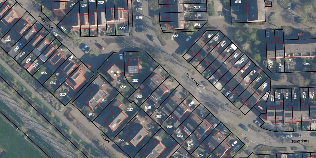 Het perceel waarop Roerdomp 51 staat heeft een oppervlakte van 256 m². Dit is een middelgroot perceel. De perceeloppervlakte wordt geregistreerd door het Kadaster. Gedetailleerde informatie over de maten van dit perceel kunt u vinden in het rapport Kadastrale kaart met maatvoering van Roerdomp 51.