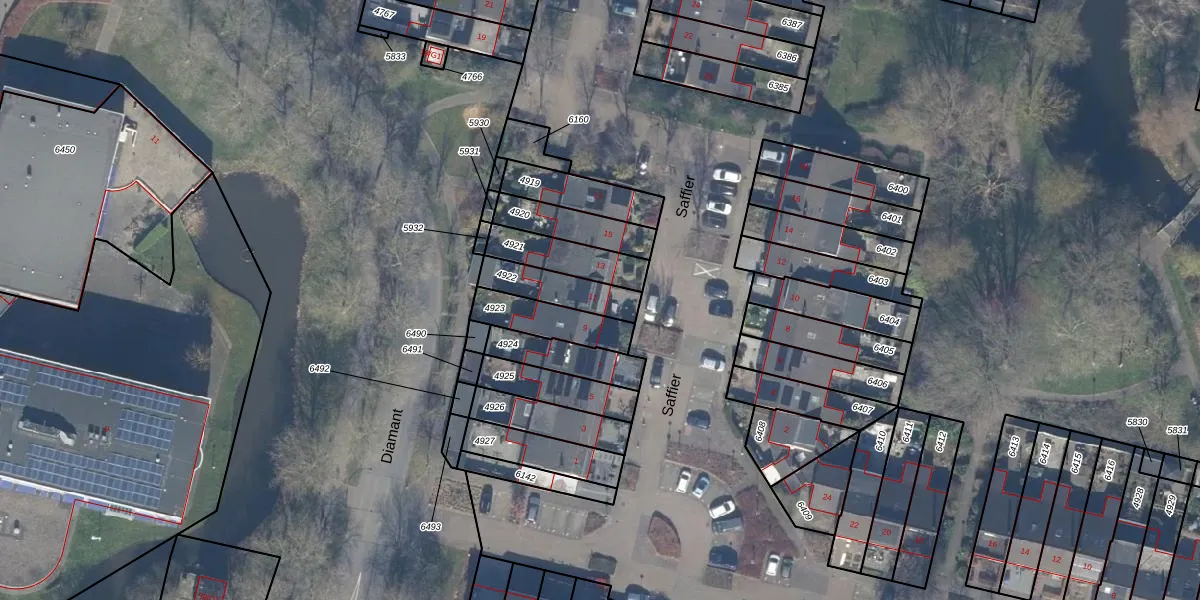 Het perceel waarop Saffier 11 staat heeft een oppervlakte van 144 m². Dit is een middelgroot perceel. De perceeloppervlakte wordt geregistreerd door het Kadaster. Gedetailleerde informatie over de maten van dit perceel kunt u vinden in het rapport Kadastrale kaart met maatvoering van Saffier 11.