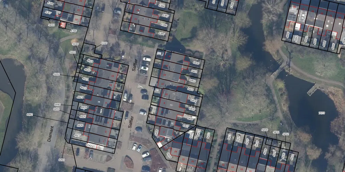 Het perceel waarop Saffier 12 staat heeft een oppervlakte van 149 m². Dit is een middelgroot perceel. De perceeloppervlakte wordt geregistreerd door het Kadaster. Gedetailleerde informatie over de maten van dit perceel kunt u vinden in het rapport Kadastrale kaart met maatvoering van Saffier 12.