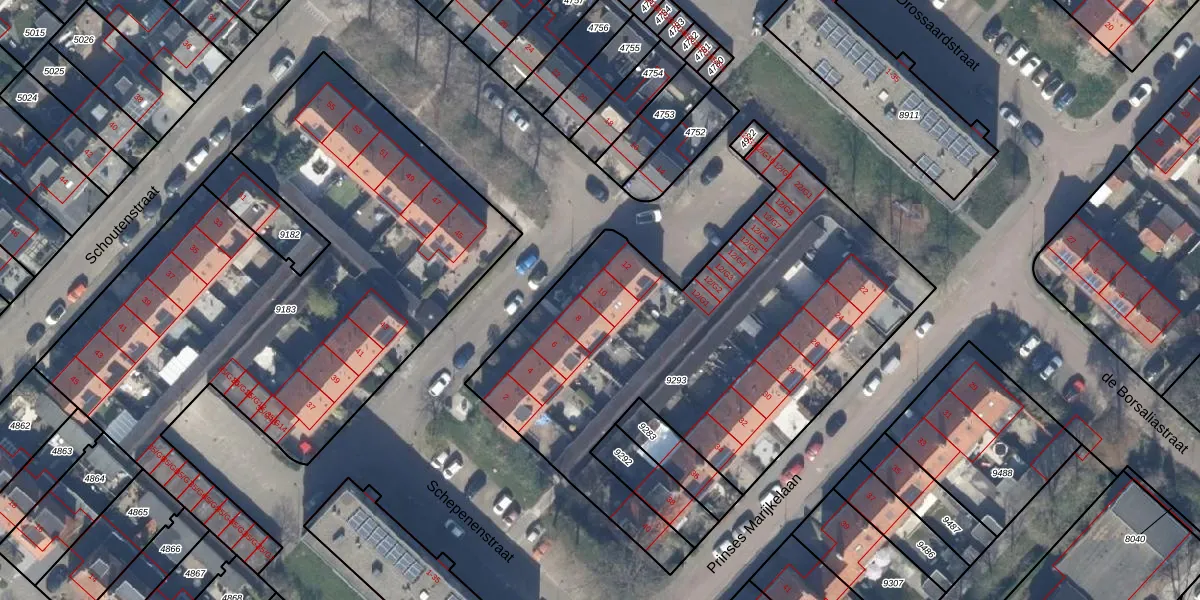 Het perceel waarop Schepenenstraat 10 staat heeft een oppervlakte van 2361 m². Dit is een zeer groot perceel. De perceeloppervlakte wordt geregistreerd door het Kadaster. Gedetailleerde informatie over de maten van dit perceel kunt u vinden in het rapport Kadastrale kaart met maatvoering van Schepenenstraat 10.