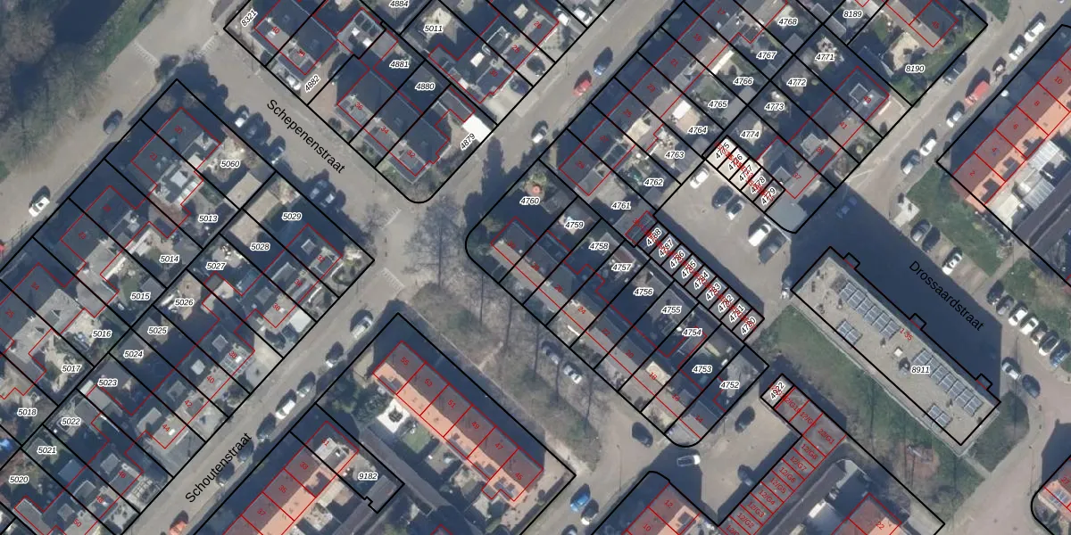 Gebruik de zoekbalk of klik op een perceel voor informatie over de adressen binnen dit perceel.