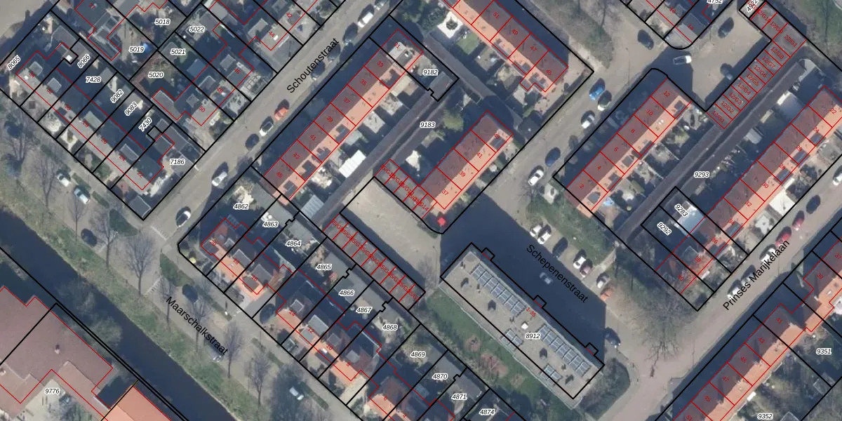 Het perceel waarop Schepenenstraat 35-G14 staat heeft een oppervlakte van 2875 m². Dit is een zeer groot perceel. De perceeloppervlakte wordt geregistreerd door het Kadaster. Gedetailleerde informatie over de maten van dit perceel kunt u vinden in het rapport Kadastrale kaart met maatvoering van Schepenenstraat 35-G14.