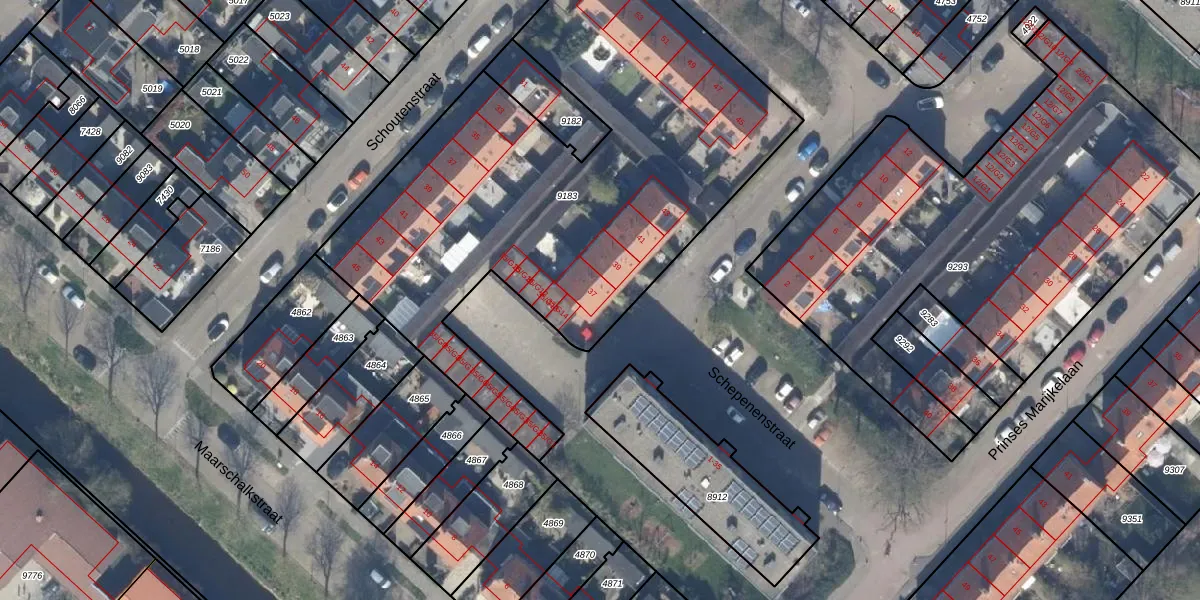 Het perceel waarop Schepenenstraat 37 staat heeft een oppervlakte van 2875 m². Dit is een zeer groot perceel. De perceeloppervlakte wordt geregistreerd door het Kadaster. Gedetailleerde informatie over de maten van dit perceel kunt u vinden in het rapport Kadastrale kaart met maatvoering van Schepenenstraat 37.