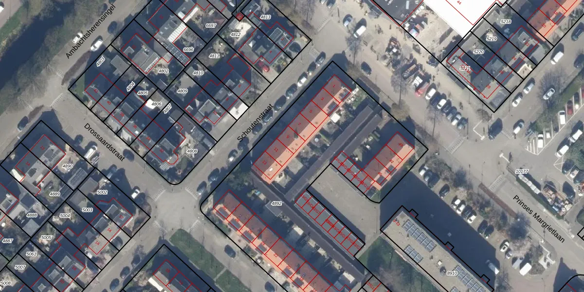Het perceel waarop Schoutenstraat 9 staat heeft een oppervlakte van 3250 m². Dit is een zeer groot perceel. De perceeloppervlakte wordt geregistreerd door het Kadaster. Gedetailleerde informatie over de maten van dit perceel kunt u vinden in het rapport Kadastrale kaart met maatvoering van Schoutenstraat 9.