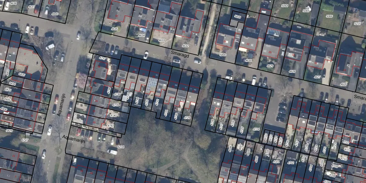 Het perceel waarop Smaragd 29 staat heeft een oppervlakte van 168 m². Dit is een middelgroot perceel. De perceeloppervlakte wordt geregistreerd door het Kadaster. Gedetailleerde informatie over de maten van dit perceel kunt u vinden in het rapport Kadastrale kaart met maatvoering van Smaragd 29.