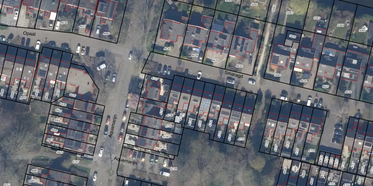 Gebruik de zoekbalk of klik op een perceel voor informatie over de adressen binnen dit perceel.