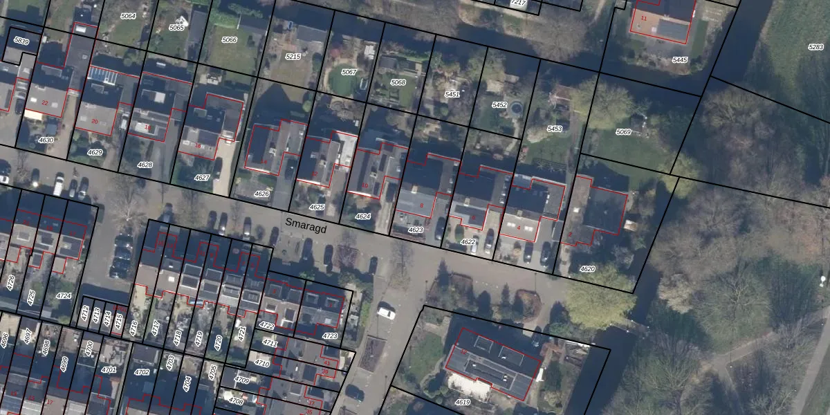 Het perceel waarop Smaragd 8 staat heeft een oppervlakte van 388 m². Dit is een groot perceel. De perceeloppervlakte wordt geregistreerd door het Kadaster. Gedetailleerde informatie over de maten van dit perceel kunt u vinden in het rapport Kadastrale kaart met maatvoering van Smaragd 8.