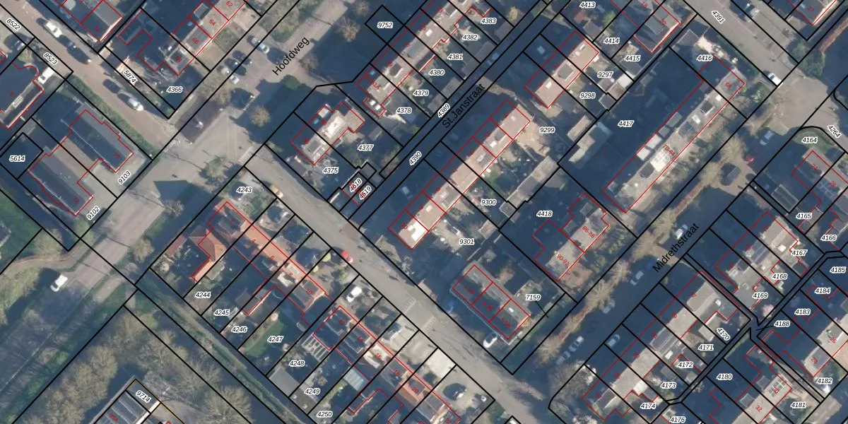 St.Janstraat 9 is gelegen op kadastraal perceel MDT01C9301. Deze kadastrale aanduiding is uniek en wordt gebruikt door het Kadaster om eigendomsrechten en andere zakelijke rechten vast te leggen. Het perceel maakt onderdeel uit van de kadastrale gemeente Mijdrecht.