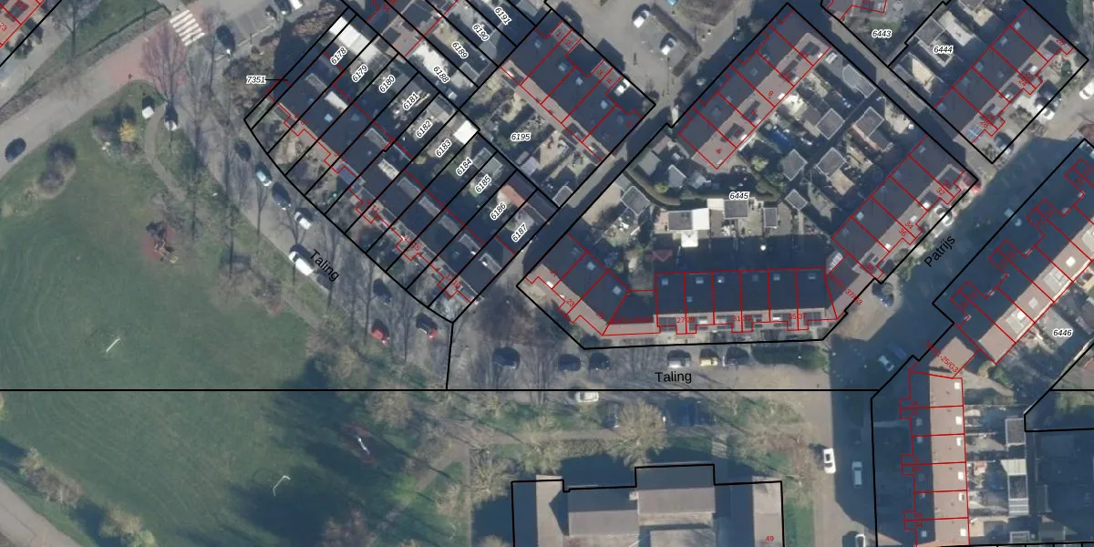 Het perceel waarop Taling 21 staat heeft een oppervlakte van 2945 m². Dit is een zeer groot perceel. De perceeloppervlakte wordt geregistreerd door het Kadaster. Gedetailleerde informatie over de maten van dit perceel kunt u vinden in het rapport Kadastrale kaart met maatvoering van Taling 21.