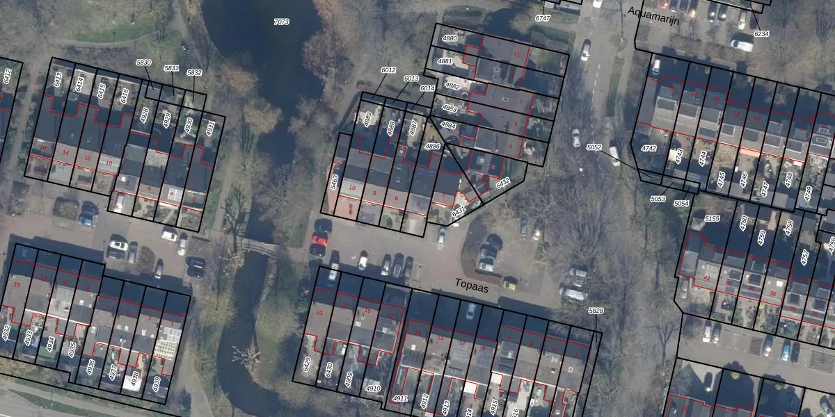 Het perceel waarop Topaas 4 staat heeft een oppervlakte van 145 m². Dit is een middelgroot perceel. De perceeloppervlakte wordt geregistreerd door het Kadaster. Gedetailleerde informatie over de maten van dit perceel kunt u vinden in het rapport Kadastrale kaart met maatvoering van Topaas 4.