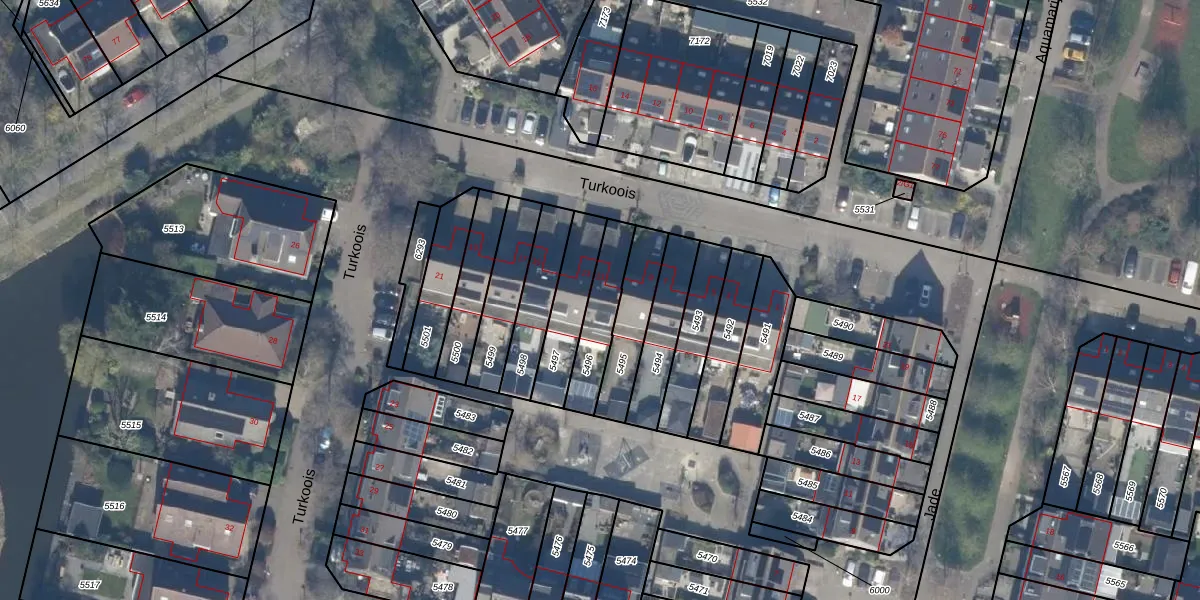 Het perceel waarop Turkoois 11 staat heeft een oppervlakte van 174 m². Dit is een middelgroot perceel. De perceeloppervlakte wordt geregistreerd door het Kadaster. Gedetailleerde informatie over de maten van dit perceel kunt u vinden in het rapport Kadastrale kaart met maatvoering van Turkoois 11.