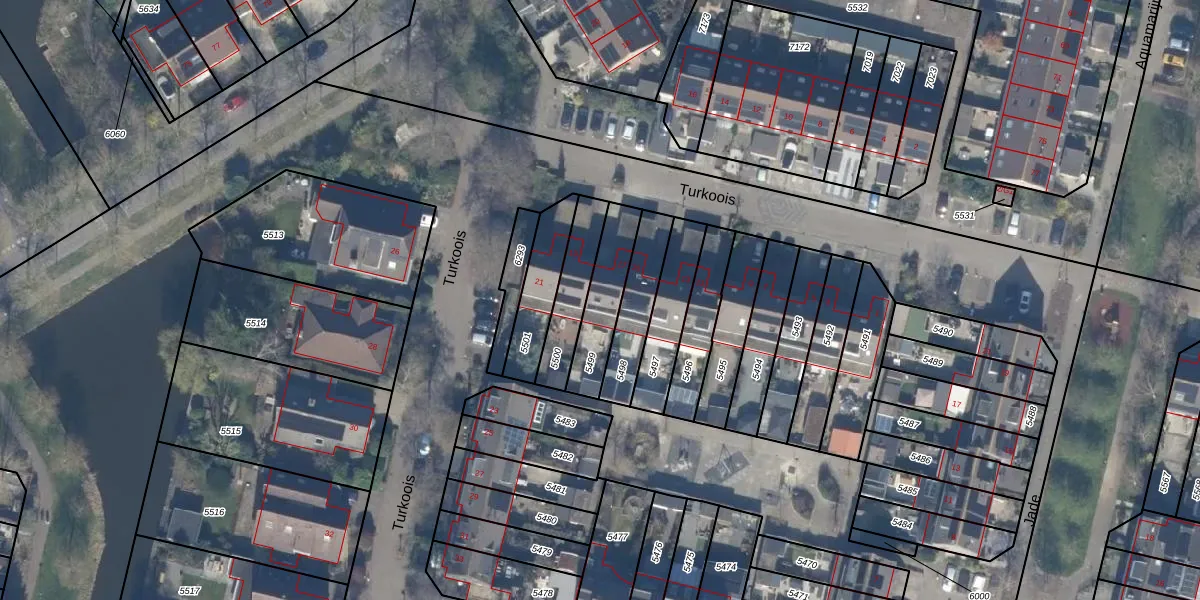 Het perceel waarop Turkoois 17 staat heeft een oppervlakte van 174 m². Dit is een middelgroot perceel. De perceeloppervlakte wordt geregistreerd door het Kadaster. Gedetailleerde informatie over de maten van dit perceel kunt u vinden in het rapport Kadastrale kaart met maatvoering van Turkoois 17.