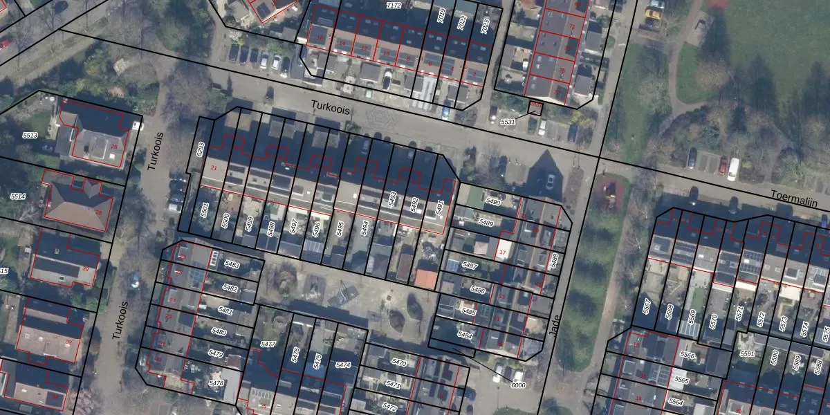 Het perceel waarop Turkoois 3 staat heeft een oppervlakte van 174 m². Dit is een middelgroot perceel. De perceeloppervlakte wordt geregistreerd door het Kadaster. Gedetailleerde informatie over de maten van dit perceel kunt u vinden in het rapport Kadastrale kaart met maatvoering van Turkoois 3.
