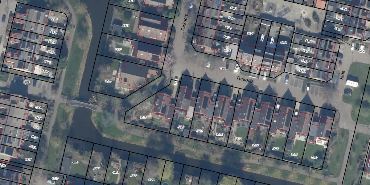 Het perceel waarop Turkoois 40 staat heeft een oppervlakte van 316 m². Dit is een groot perceel. De perceeloppervlakte wordt geregistreerd door het Kadaster. Gedetailleerde informatie over de maten van dit perceel kunt u vinden in het rapport Kadastrale kaart met maatvoering van Turkoois 40.