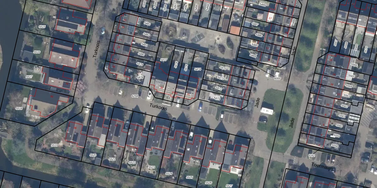 Het perceel waarop Turkoois 41 staat heeft een oppervlakte van 212 m². Dit is een middelgroot perceel. De perceeloppervlakte wordt geregistreerd door het Kadaster. Gedetailleerde informatie over de maten van dit perceel kunt u vinden in het rapport Kadastrale kaart met maatvoering van Turkoois 41.