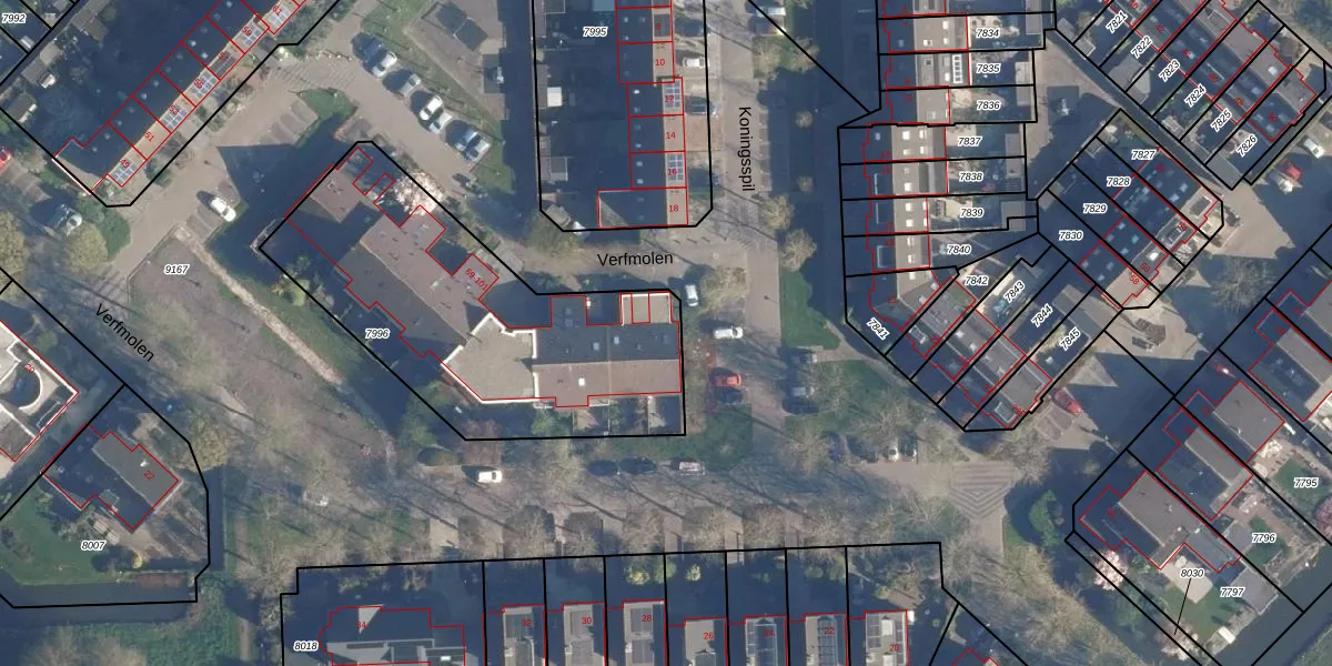 Het perceel waarop Verfmolen 101 staat heeft een oppervlakte van 1493 m². Dit is een zeer groot perceel. De perceeloppervlakte wordt geregistreerd door het Kadaster. Gedetailleerde informatie over de maten van dit perceel kunt u vinden in het rapport Kadastrale kaart met maatvoering van Verfmolen 101.