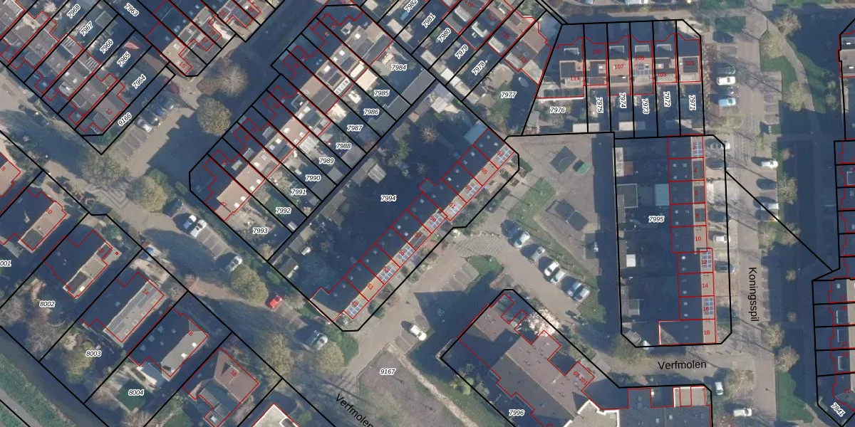 Het perceel waarop Verfmolen 59 staat heeft een oppervlakte van 1589 m². Dit is een zeer groot perceel. De perceeloppervlakte wordt geregistreerd door het Kadaster. Gedetailleerde informatie over de maten van dit perceel kunt u vinden in het rapport Kadastrale kaart met maatvoering van Verfmolen 59.