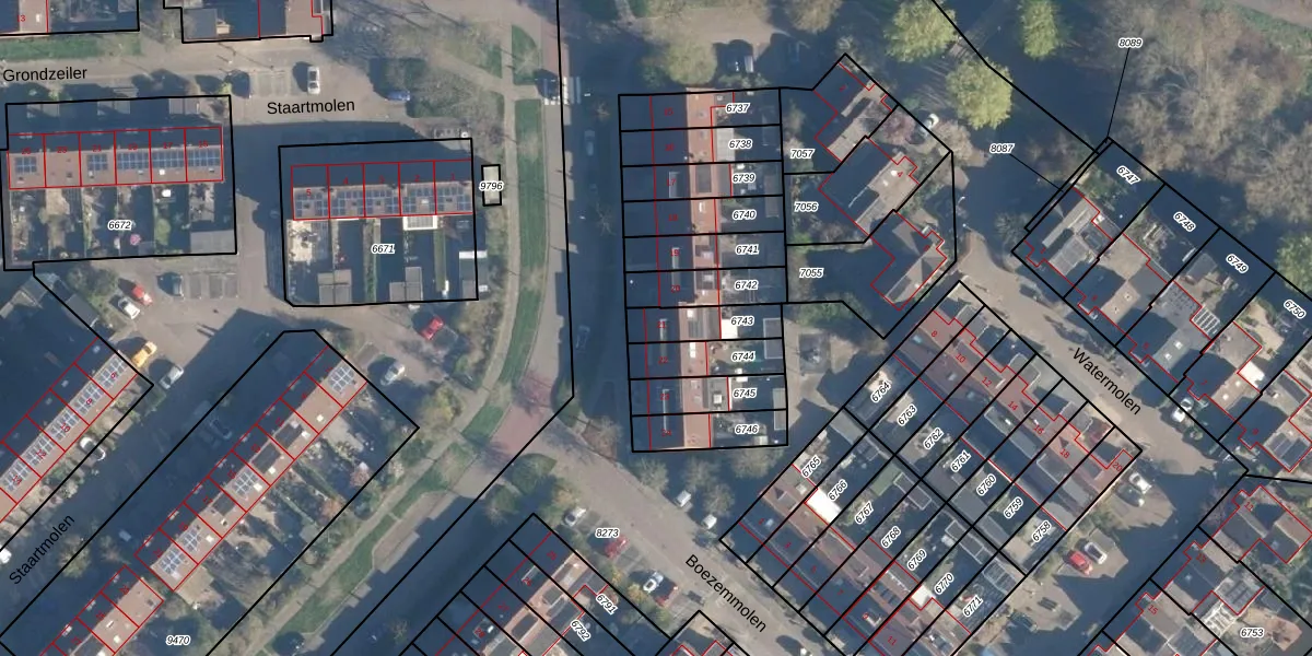 Gebruik de zoekbalk of klik op een perceel voor informatie over de adressen binnen dit perceel.