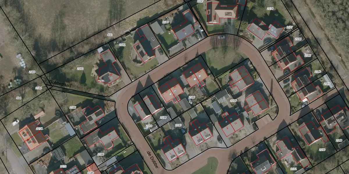 Het perceel waarop de Dobbe 25 staat heeft een oppervlakte van 770 m². Dit is een groot perceel. De perceeloppervlakte wordt geregistreerd door het Kadaster. Gedetailleerde informatie over de maten van dit perceel kunt u vinden in het rapport Kadastrale kaart met maatvoering van de Dobbe 25.