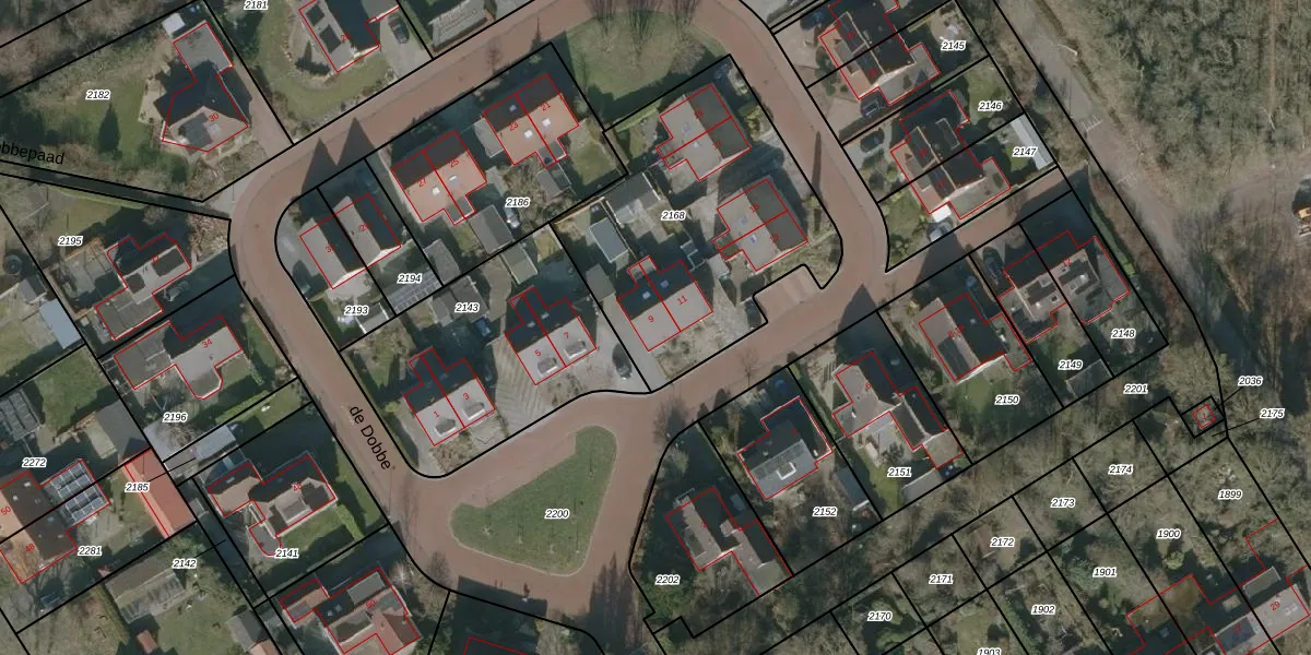 Het perceel waarop de Dobbe 9 staat heeft een oppervlakte van 1240 m². Dit is een zeer groot perceel. De perceeloppervlakte wordt geregistreerd door het Kadaster. Gedetailleerde informatie over de maten van dit perceel kunt u vinden in het rapport Kadastrale kaart met maatvoering van de Dobbe 9.