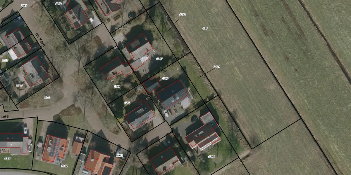 Het perceel waarop de Karn 21 staat heeft een oppervlakte van 707 m². Dit is een groot perceel. De perceeloppervlakte wordt geregistreerd door het Kadaster. Gedetailleerde informatie over de maten van dit perceel kunt u vinden in het rapport Kadastrale kaart met maatvoering van de Karn 21.