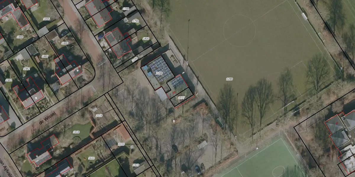 Het perceel waarop de Wissel 2-A staat heeft een oppervlakte van 2,9 ha. Dit is een zeer groot perceel. De perceeloppervlakte wordt geregistreerd door het Kadaster. Gedetailleerde informatie over de maten van dit perceel kunt u vinden in het rapport Kadastrale kaart met maatvoering van de Wissel 2-A.